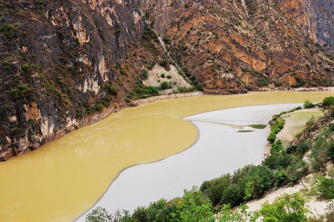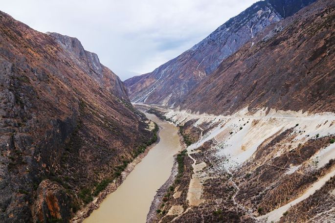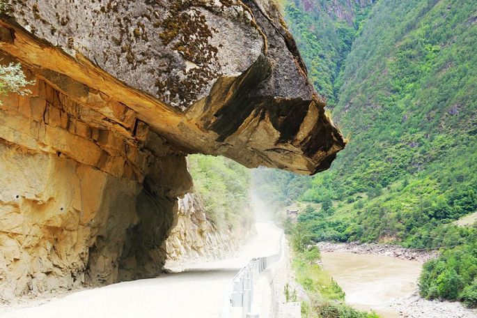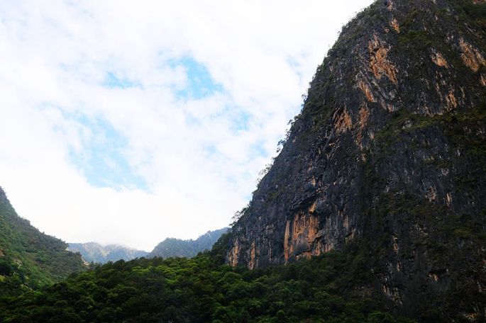 体验完溜索,继续乘车前行,10:43到维拉坝,11:44到双纳瓦底,12:04到老虎跳,再次停车下来休息。老虎跳,傈僳族叫“腊跨洛”和“腊玛登培”,是形容峡谷此处江段狭窄,老虎都能一跳而过的意思,类似于香格里拉的老虎跳。整个峡长10公里,最窄处10米,是怒江流域最狭窄的地方,两岸峰峦耸峙,峭壁如削,江中怪石林立,水流湍急。小龙带来的无人机,在这里初试身手,感觉效果还不错。