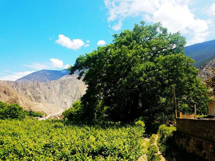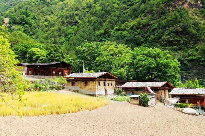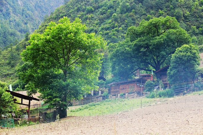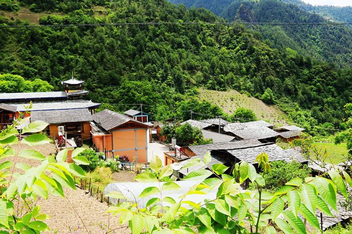 告别了雾里村,从都那洛大桥一侧向山上盘绕再行6公里,12:10我们又到达了另一个民族特色村——秋那桶村。可以说秋那桶村是怒江峡谷深处云南境内最北的一个村子了。在村里四处转了转,发现最新、最高、最显眼的建筑是一座天主教堂,看样子应该是刚建不久的。村里一小块地中,还有几位村民正在收割青稞。午饭是到阿白客栈吃的,炖土鸡自然是很香的,只是鸡肉不太烂,嚼起来有些费劲。