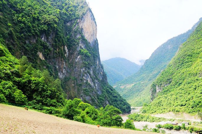 今天是行程的第二天,沿峡谷、逆怒江,一路北上,目的地是福贡县的老姆登村,全程约105公里。