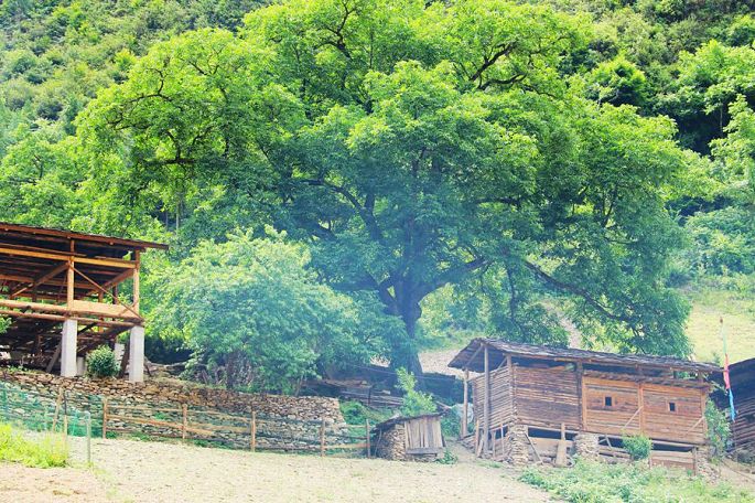 10:50来到飞来寺对面澜沧江畔、卡瓦格博雪山脚下这个有着许多古树的美丽藏族小村西当村,就是小黑的家乡,在村中一幢藏式民居大宅里,小黑妈妈热情地迎接我们,早已为我们准备好了早餐,给我们端出了刚刚烧好的酥油茶、鲜牛奶,还有普鲁(藏式油条),尤其那刚挤出的鲜奶,浓香甘咧、余味无穷,说实在的,很久没有喝过这种鲜奶了……