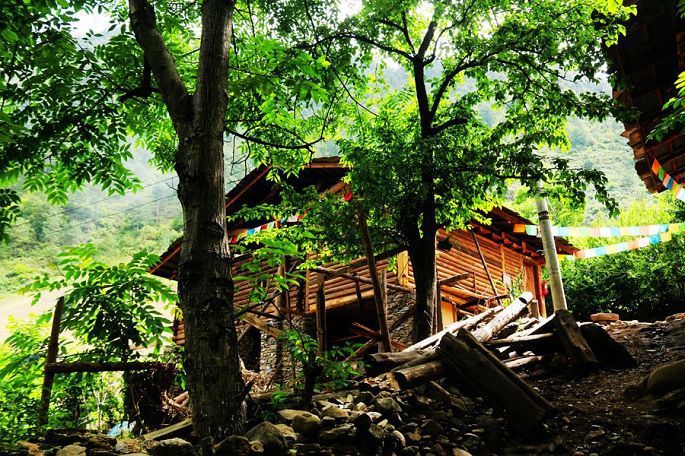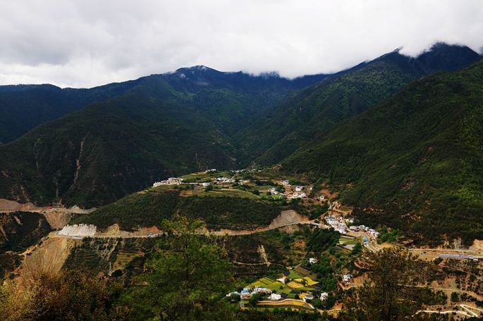 同昨天的路况一样,由于S228全线道路改造,拓宽施工的原因,很多路段常常单边轮流放行,所以车子缓慢颠簸前行,只能走走停停,且一路满是尘土,今天200多公里的路程,整整走了11个小时,当然其间走了一小段冤枉路:小黑本是想带我们走江的另一侧,想着那边没有施工,车少、尘土少,没想到走了十余分钟,就被途中一大石挡道,无论我们几个人使出多大的劲,最后都奈何它不得,它自岿然不动,我们只得悻悻而返,还是老老实实回归正在施工中尘土飞扬的正道,直到下午7点,夕阳西下,黄昏时分,才终于到达今天的目的地贡山县的丙中洛乡(镇),也就是“丙察察”线路的起点。