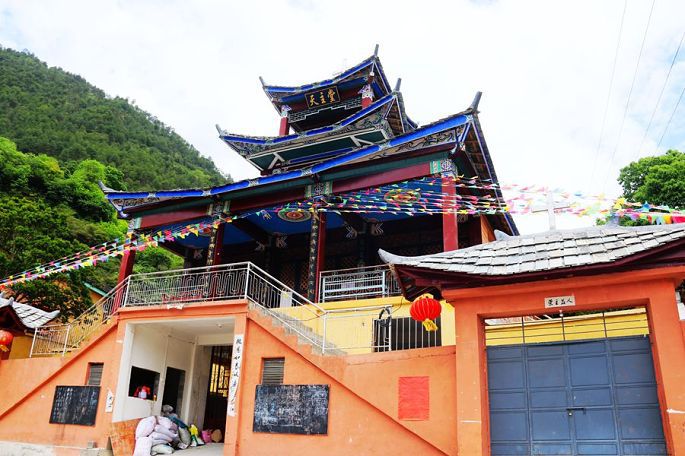 飞来寺不仅是指德钦县的一座寺院,如今更是成了一个地名,一个景区的名字,而具体的飞来寺这座寺院,距我们入住的酒店,徒步还需要大概20多分钟。到酒店放下行李,稍事休息后,14:30我们4人相约一起去游览了就位于G214公路边上的飞来寺。