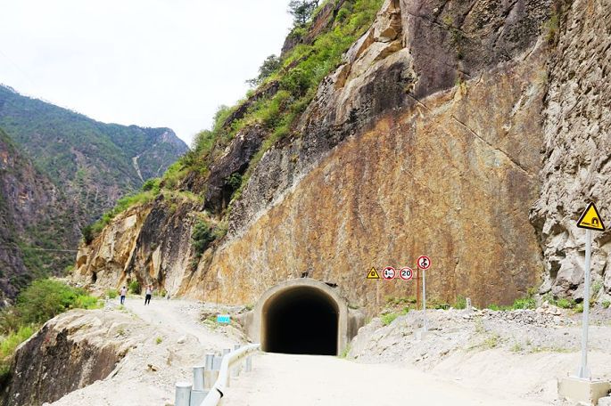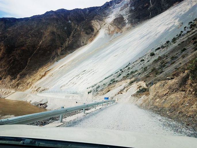 如今在老路旁边打了隧洞,穿洞而过,经花瓣湾、V字形大拐弯、空行姆寺,就到了大流沙处,这算是丙察察线上的一个重要地标,山坡上大面积的流沙,随时都有可能倾泻而下,远远望去就令人生畏,16:25我们顺利通过了。继续前行没多久,17:03到达了今天的目的地西藏察隅县的察瓦龙乡(海拔1920米),这里便是“丙察察”之第一个“察”字所在地,入住禧来登藏家酒店。