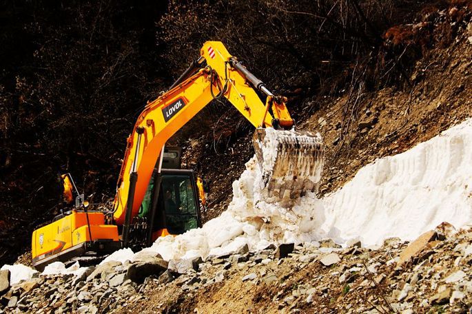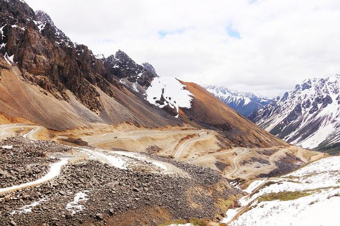 8:30我们乘车离开察瓦龙乡,折向西行,继续挺进西藏,9:10到怒江大桥后,我们就要暂别陪伴我们多日的怒江了。9:24相继经过了十八弯、蛇形山路,一路盘山而上,开始能看到雪山了,10:30路遇前方有养路工人正在使用挖掘机等大型机械清理雪崩,短暂停留休息了一会儿。
