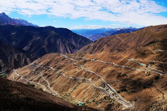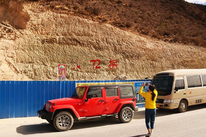 9:32经同尼村后,就该翻川藏线上著名的天路72道拐了,9:54来到观景台,停车休息,去年经过这里时便印象深刻,今年再次伫立观景台,俯瞰那蜿蜒的一道又一道的弯拐,依然觉得很壮观。观景台旁边围挡起来正在进行施工的是一座旅游星级厕所。