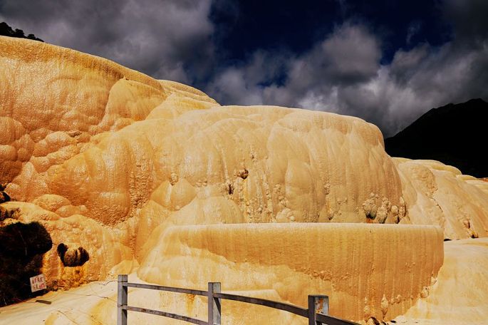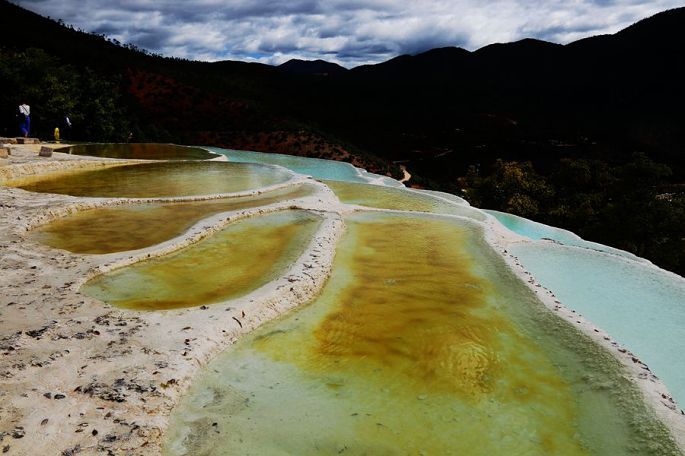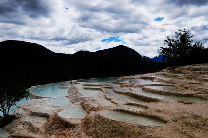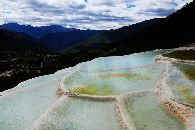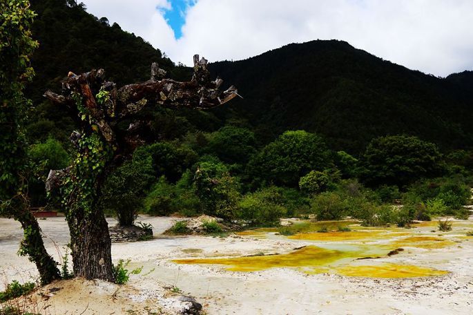 早餐后8:05,我们一行乘车离开香格里拉市,行走的这条旅游东环线,车辆不多,路况也不差,就是山路弯道特别多,最后连司机小黑都坦承有些招架不住了。9:53终于到达三坝乡的白水台,这里的一面山坡上,分布有我国单体面积最大的泉华台地,景观看起来与四川的黄龙很相似,但比黄龙要少走许多路,一边上,另一边下,转完一圈下来大约需要一个半小时吧。