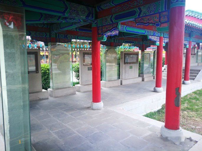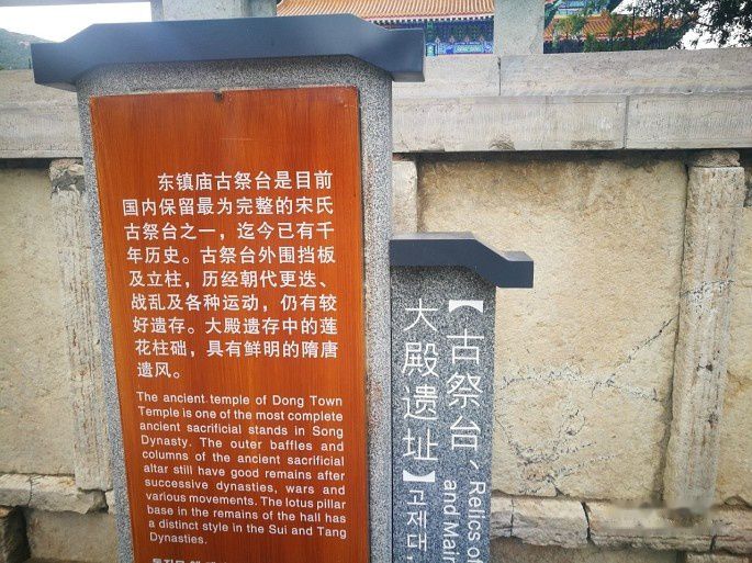 东镇碑林元、明、清各朝沿袭祭之,每祭必碑。另有文人墨客的游览题咏诗刻。至清末计有大小碑碣360余幢,形成规模宏伟、气势壮观的碑林。