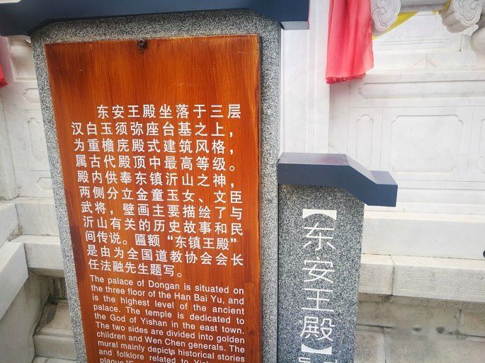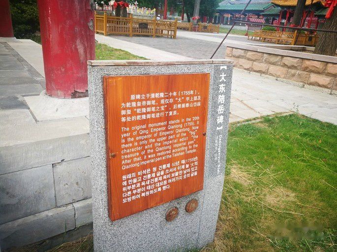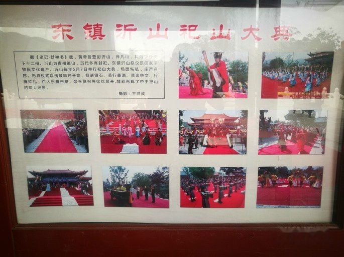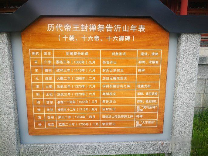 其中有965年(北宋乾德三年)御碑、宋仁宗赵祯景?御碑、1298年(元大德二年)诏封沂山为东安王的蒙汉文御碑、1370年(明洪武三年)朱元璋诏封"沂山之神"御碑。清康熙手书"灵气所钟"御碑、乾隆亲笔"大东陪岳"御碑、