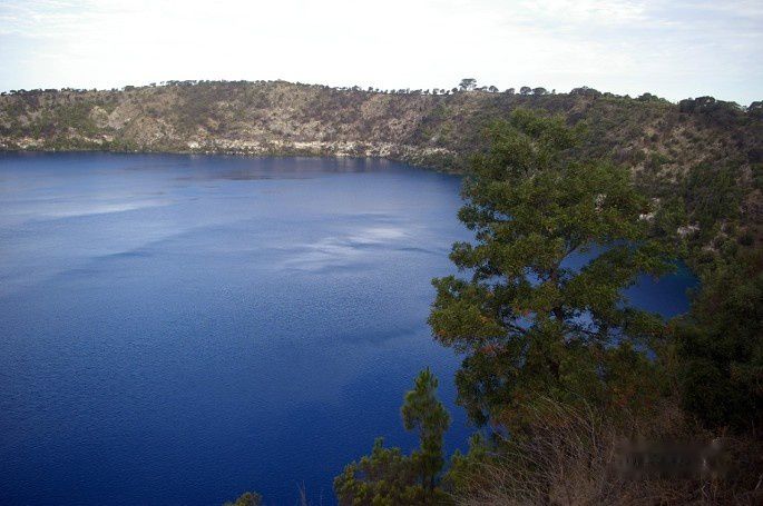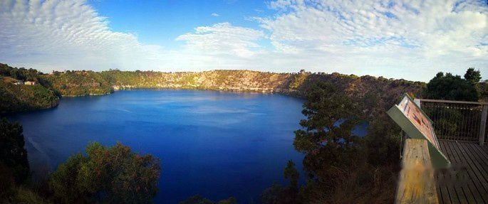 傍晚时分到达今天的住宿地——Mount Gambier(甘比山)市,游览这里有名的火山湖——蓝湖。