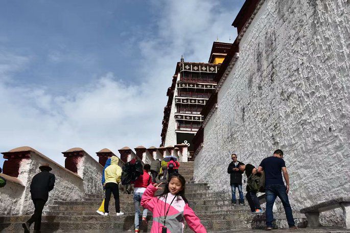 因为川藏线是一天有四季十里不同天,天气变化特此快,山上山下温差特别大,阳光特别强。哎,这次把带的唯一件防风衣还被掉在了"布达拉宫"的停车场了.所以后面的整个行程都是穿着司机"陈师傅"的衣服 度过的.....