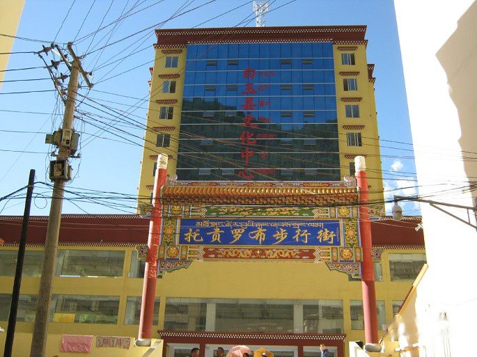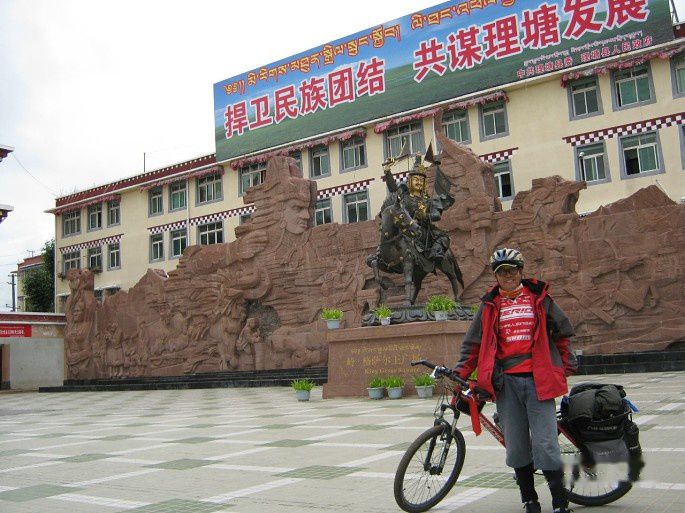 回头找地图上标注的烈士陵园费了好大劲才找到,情景令我失望。原来的大门像一个建筑工地的临时大门,道路泥泞不堪。另一个方向正在建新大门,还算有些气势,但坐落在散乱的居民区后边小山坡上,位置偏僻而逼仄。和我们内地比起来,天壤之别,可见他们对此不甚重视。回到城里,见一座格萨尔王广场,上有格萨尔王骑马雕塑。还有一个仁康古街,却看不出“古”在何处。这里还是七世达赖降生地,我原以为他就是仓央嘉措,后来查资料才知道他是六世达赖仓央嘉措的转世灵童。