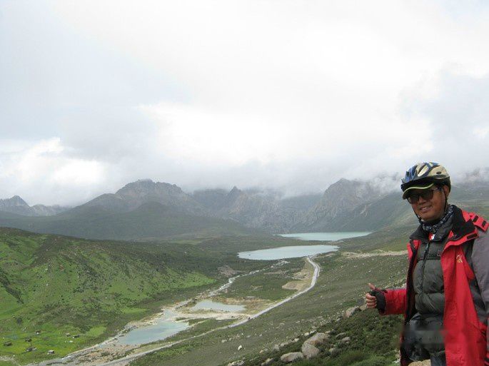 早起,发现前胎漏气。这是川藏线第一次补胎,很幸运了。又是一根细钢丝惹的祸。8点准时出发,沿理塘溯流而上,感觉不到上坡。11点开始爬坡,又遇大雨。雨中偶遇一女生,也是独行,我们结伴而行。女生体力明显不行。到海子山垭口,雨止。我们也停车休息,看远处两座海子湖,有人说是姊妹湖,有人说是情侣湖。因为下雨,雾气迷蒙,看不甚清楚。下山到时候阳光明媚,风景甚好。路在山崖间穿行,路两边山峦高耸,连绵不绝,山上绿树葱茏,路一边还有山溪激流奔涌,气势壮观。
