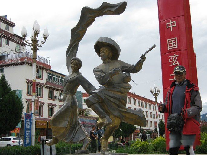 早上骑车到巴塘县城转转,顺便打探消息。进城路边巴塘河畔有一广场,当地少男少女们穿着民族服装正在排练跳舞,是那种藏族民族舞,跟锅庄舞差不多。音乐一遍一遍的放,舞一遍一遍地跳。拍照、摄像,再进城。入城的三岔路口有一小广场,有民族舞雕塑,标明“弦子之乡”,这便是有名的“巴塘弦子”。弦子是一种乐器,跟二胡一样,比二胡小,简单。回想刚才看到的,男的每人一把弦子,猜想他们在排练大型的“巴塘弦子舞”,是要参加什么大型活动吧 ?