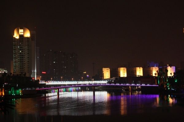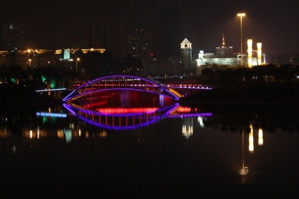 彩桥灯影变幻。