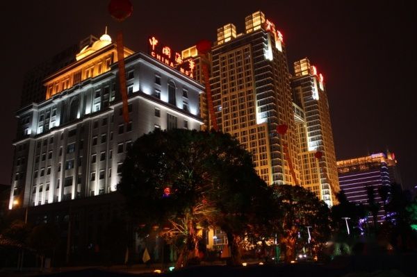 海事大楼,榕树上高挂大红灯笼。
