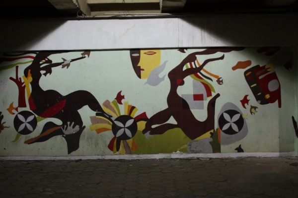 桥下的装饰画。