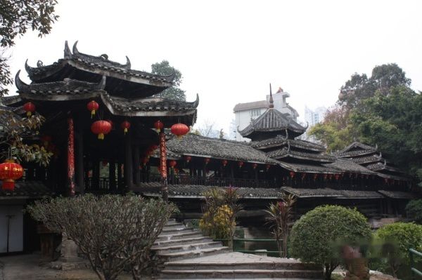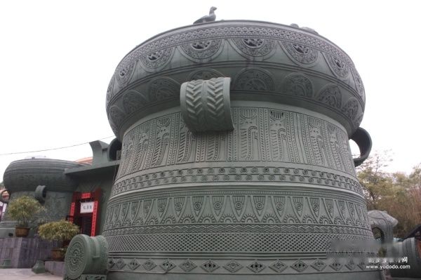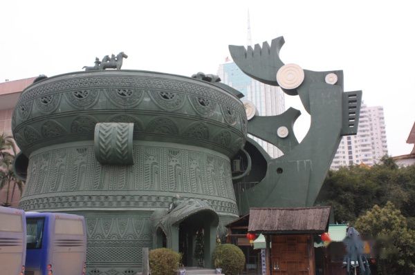 广西博物馆的室外陈列-广西民族文物苑是博物馆大楼的延伸和扩展。巨大铜鼓造型的鼓楼建筑其实是家私房菜馆。