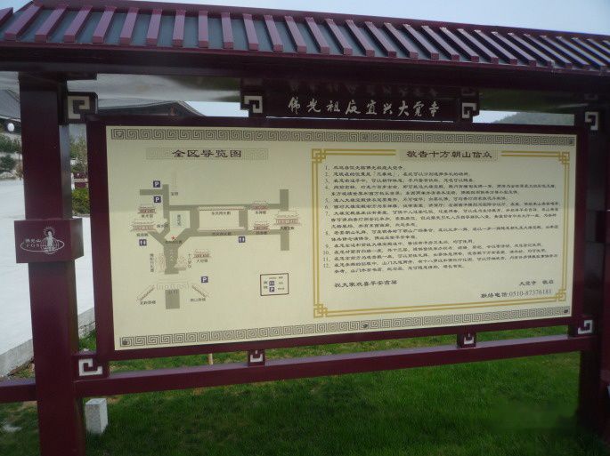 庙前一根阿育王柱,上书佛光祖庭宜兴大觉寺,庙门是佛光祖庭大觉寺七个字,