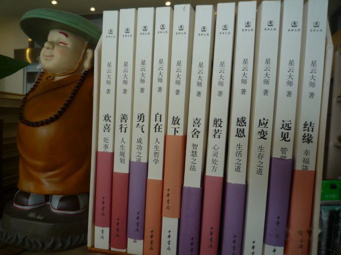 大雄宝殿旁厢房是介绍星云大师处:大师著作等身,总计二千多万字,八十多种。