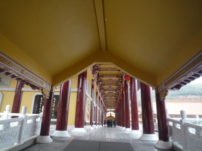 庙外前方为云湖,面积150平方公里,是国家大型水库,周围环境幽静,群山环抱,水质清冽。