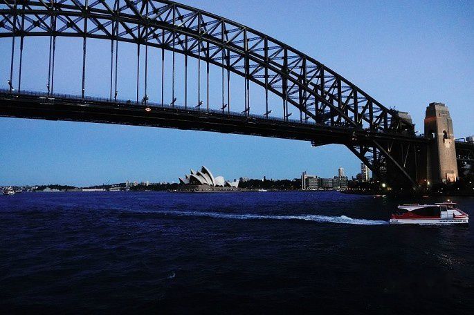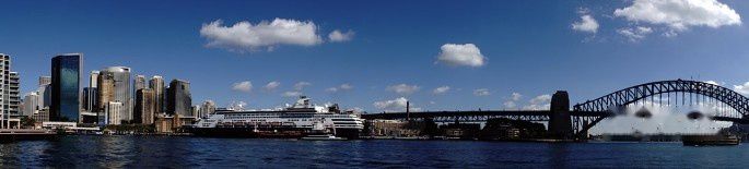 下午4:04发车,4:13到情人港。4:45登上了豪华游轮,固定座位,吃了三道澳洲西式晚餐,夜游悉尼湾。