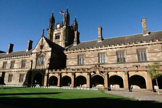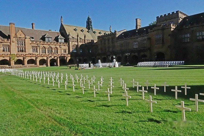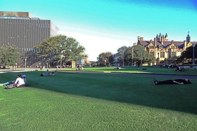 下午2:55发车,3:03到悉尼大学(自费景点之五)。里面在准备明天澳新联军日的活动,所以有的地方拦起来不让通行。我们在里面转了一大圈,这个大学确实挺美的。