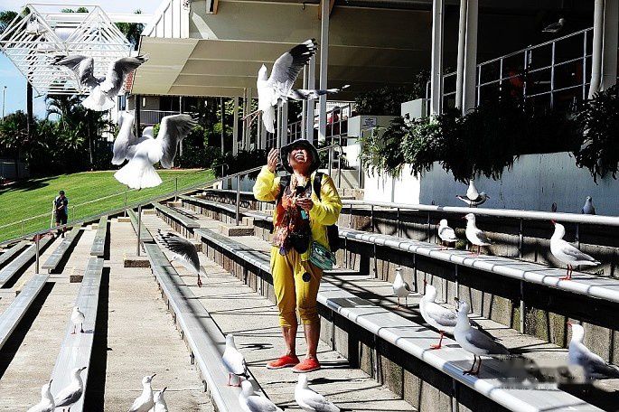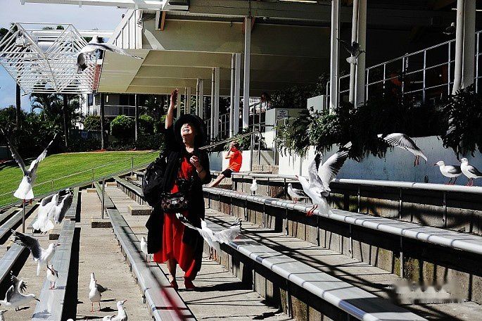 11:50进入海洋世界。我们先找了个地方吃了自备的午餐,然后自由闲逛。先到外面喂了一阵澳洲银鸥,很过瘾的,这些银鸥不怕人,甚至跳到餐桌上抢夺食物,因此一投喂,马上引来一大群绕着飞舞,蛮壮观的。