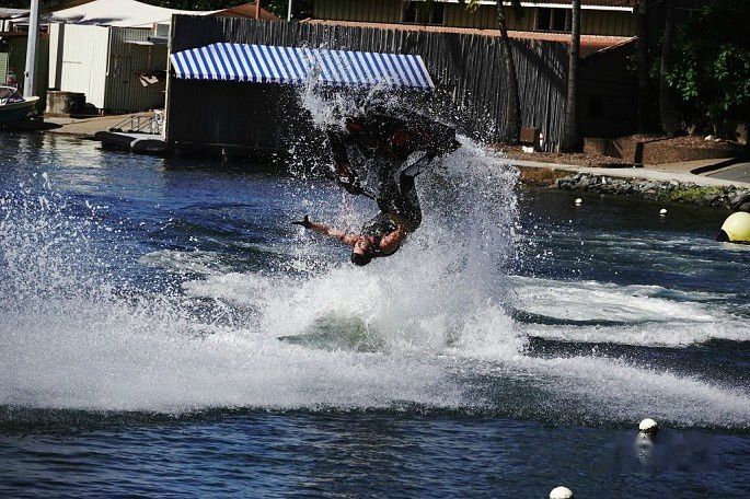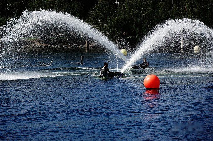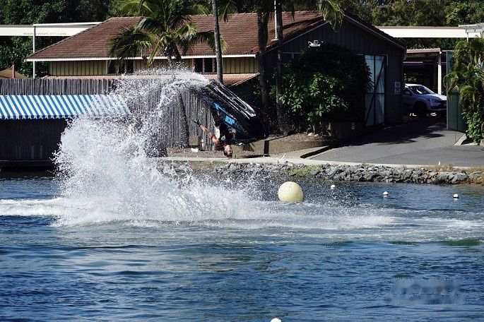 列车行至我们看企鹅的地方下了车,因为看到摩托艇表演开始了,就近距离的欣赏刺激的摩托艇各种高难度惊险表演。