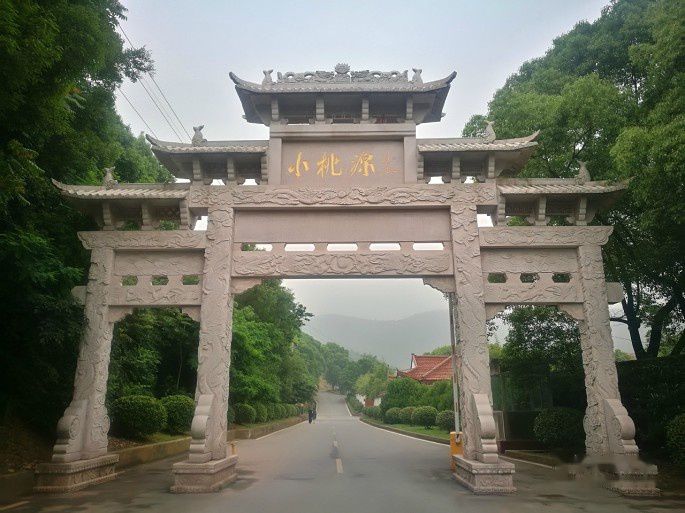 历史建筑有三1:白沙泉、白沙泉边是一处新建的牌楼,著名书法家尉天池书写了“小桃源”三字。