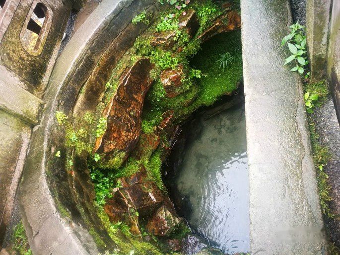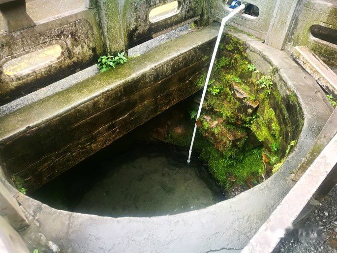 泉口四周布满了苔藓,水并不深。,白沙泉开掘了近100年,水质清澈,口感还有点甜。