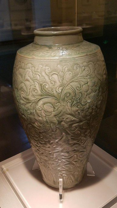 馆藏精品有青釉刻花缠枝牡丹纹瓶、青釉剔花牡丹纹带盖执壶、青釉贴花龙纹复层式熏炉、姜黄釉印花莲纹碗、青釉刻花玉壶春瓶等,琳琅满目,给人以醉心的艺术享受.....