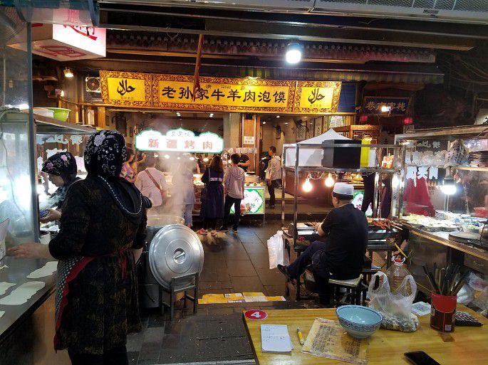 雨又下起,还不小。车站坐去西安的大巴,过泾河、渭河,又见古城墙、钟鼓楼。回民街上走看,人潮涌动,叫卖声声,老陕味浓在三秦大地。天已黑,清真寺再过不入。