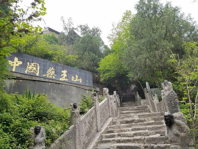 步行去药王山,约两公里。山因药圣孙思邈而出名,山上绿树成荫,古迹众多。石牌坊很多,每处古迹都有。
