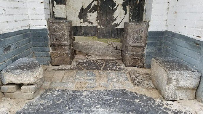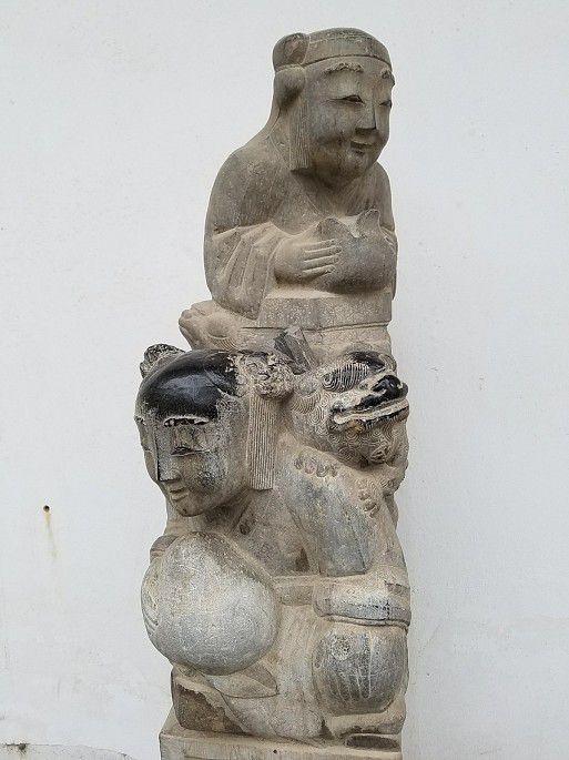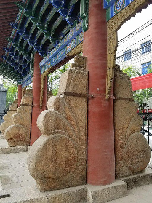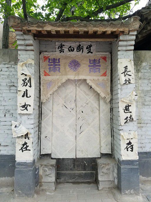 雨下了一阵,不大,凉爽之气。下山,公交回城。走邻德巷去文庙,见新整修的鹞子高三(清末陕西名拳师高占魁)纪念馆,一些宅院门口古老门墩石还在,其中一家贴着白底黑字楹联,家有人故去。