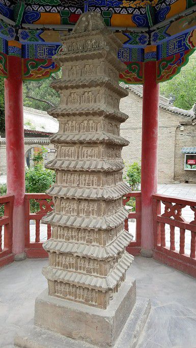 塔建于宋代,仿木楼阁式结构,底层东门门楣、门框青石上线刻佛、菩萨、天王,线条漫漶,仅能看出个大概。2004年维修塔身时发现了金元时期的佛教经卷,价值自高。
