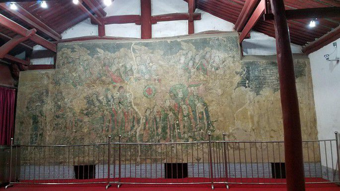 最引人在元、金两个大殿和碑廊。除了特色建筑形构,元殿内残留的道教《朝元图》壁画异常精美,久注而不动!金殿内置唐代僧人骨灰石棺,雕饰华丽精美,特别是一条青龙。