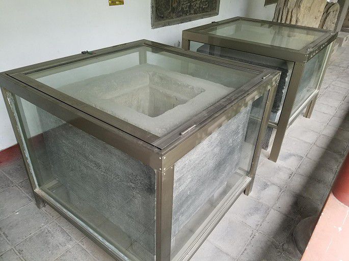 文庙也是县博物馆所在,展品不多,包括一些碑刻、造像。最珍贵的是隋代舍利石函,出土于耀县照金镇寺坪村,隋文帝分发舍利建塔所用。石函四面皆有线刻图,包括弟子(大迦叶、阿难、舍利弗、大目犍)举哀图、四天王及花纹、飞天等。