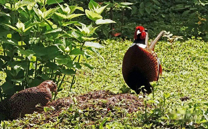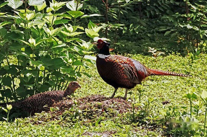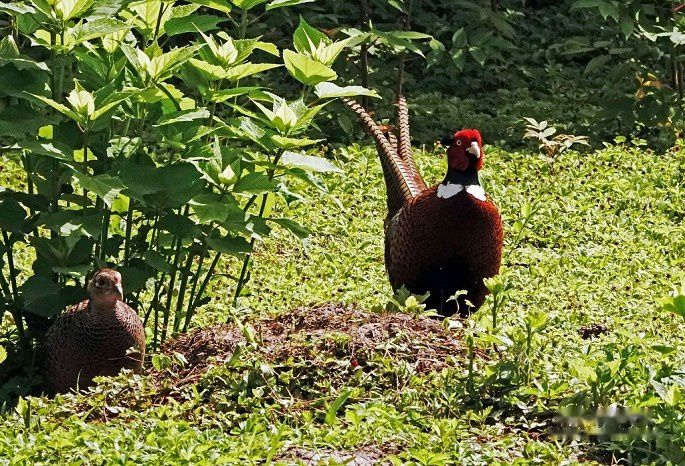 再次去奥森,再次到仰山北坡,就是为了拍正面的环颈雉。这次如愿了,一公一母慢慢从树丛里踱出来,吃了几口玉米。不知为何,母的突然飞奔回树丛,公的一脸茫然,但过一会儿也就慢慢走回树丛了。