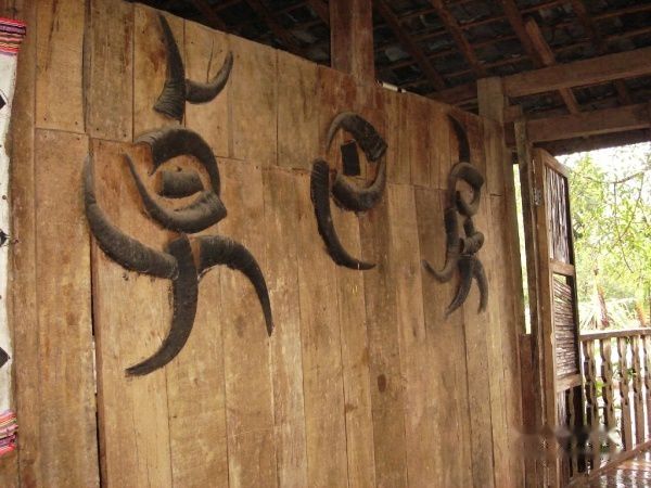 登上台阶,台阶的俩边都是牛头牛骨,这些大都是男孩子年满18岁