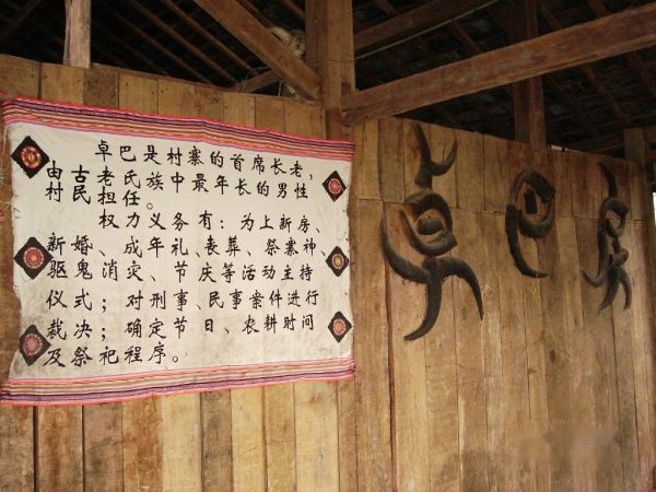 将大鼓作为神圣之物,供在卓巴(寨老)家中