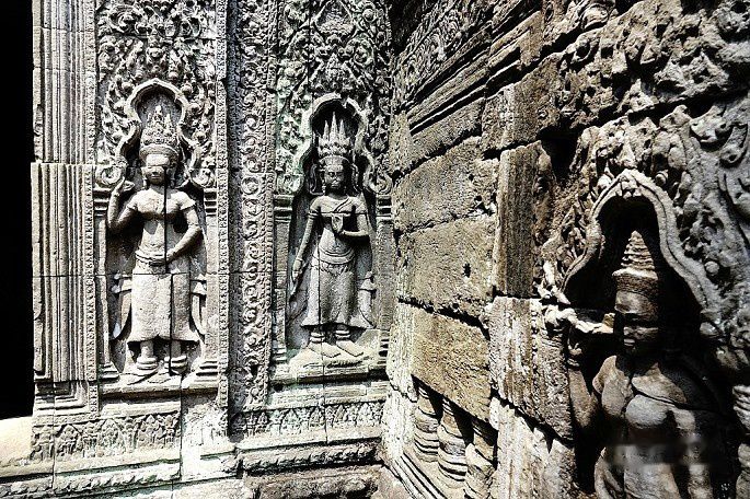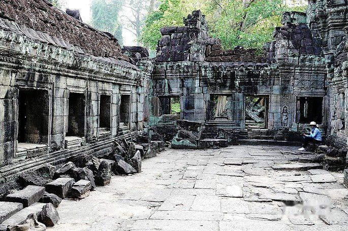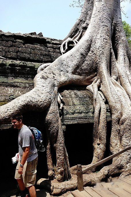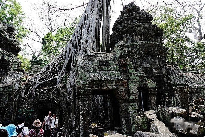其内部是迷宫般的狭窄走廊和破碎石雕,有的地方用绳索围了起来,因为随时都可能坍塌。在寺内,触角般的老树根缓慢地扼住了石雕,你可以拍到大量令人难以置信的照片。据碑文记载,当时维护这一建筑竟然需要8万人之众!——网摘