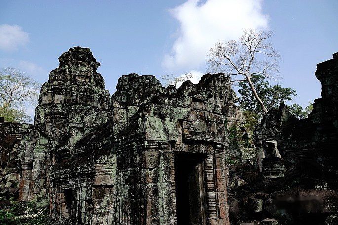 塔普伦寺——(Ta Prohm,又译塔布笼寺)位于吴哥窟东面,是大型的石头堆砌而成的佛教寺庙,吴哥遗址中的主要建筑之一,也是电影《古墓丽影》的外景地。建于12世纪末,是贾雅瓦曼第7个国王为纪念他母亲而建造,也叫“母庙”。那时寺中有3000僧侣,其中有18个高僧。最令人难忘的是考古学家有意保留了茂盛的树林,让人们知道它是如何从丛林发掘出来的。