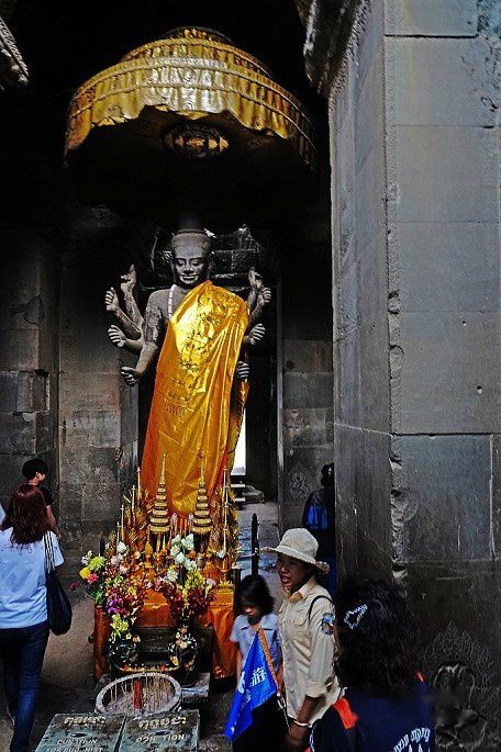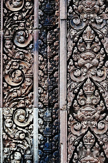 寺庙中遍布着各种雕刻,例如西门处有八臂毗湿奴神大战阿修罗的浮雕,北藏经阁有横卧在大蛇身上的毗湿奴神形象、猴子咬住阿修罗屁股不放的浮雕等。这些雕刻的刀法粗犷却不粗糙,值得慢慢品味。——网摘