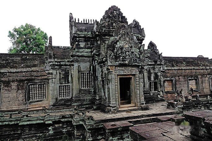 班提色玛寺——是吴哥窟“外圈”游览路线中的一个寺庙,位于东池(即东巴莱湖)东南边约400米处。Banteay Samre意为色玛族的城堡,关于这座寺庙的史料很少,据推测是与吴哥寺建造于同一时期,但其建筑结构却和许多吴哥寺庙有着明显差异。经过大规模修复,寺庙保存得十分完整。由于位置比较偏远,容易被游客忽略,这里还有着十分静谧安宁的氛围。班提色玛寺被两层巨大的同心墙(即回廊)围绕着,其独特之处在于它有一条内护城河,介于两层城墙之间,不过如今已经干涸。两层城墙各设有东南西北四座塔门,穿过如同相框一般的幽深门廊便可以来到寺庙中央,那里是一座雄伟的主殿塔。这座主殿塔与四周的回廊并不连接,是独立的,而且周边也引入了曲折的水道,只是水已干枯,换由青草覆盖着。此外,在第二层城墙内还有两座藏经阁,尤其南边那座保存得十分完好。