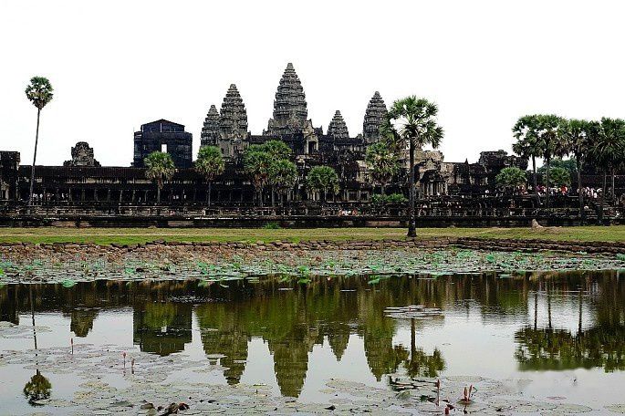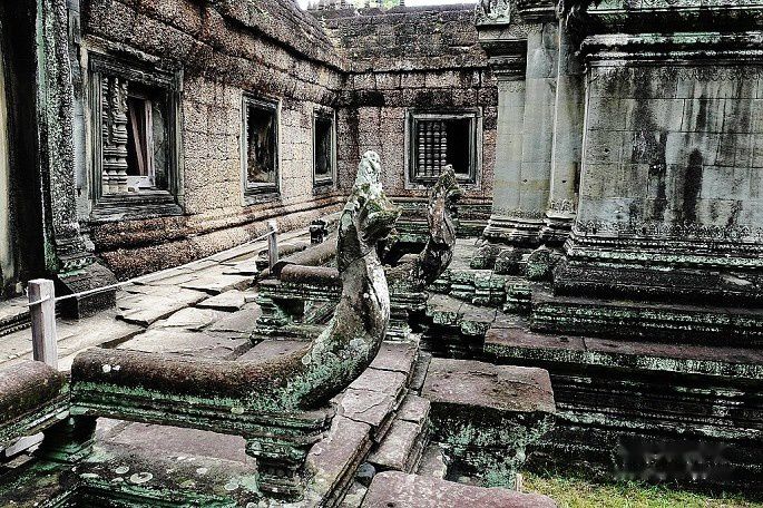 吴哥寺——小吴哥,位于柬埔寨金边西北,位于金边西北约310公里处的吴哥古迹群,是柬埔寨吴哥王朝的都城遗址,现存古迹主要包括吴哥王城(大吴哥)和吴哥窟(小吴哥)。吴哥窟(也叫小吴哥)是整个遗址中保存最完好的寺庙建筑。今天柬埔寨人将它放在自己的国旗上,足见吴哥窟在柬埔寨人心目中的神圣地位。吴哥窟最初是为敬奉印度教神灵所建,但是今天已演变为佛教寺庙。在方形广场的四个角上,各有一座石塔,而广场中央矗立着一座更高的石塔,象征神话中的圣山。无论印度教还是佛教信徒都相信,中间这个神圣的所在就是宇宙的中心。吴哥窟建在三层台阶的地基上,每层台基四周都有石雕回廊,浮雕大多取材于印度著名史诗《摩珂婆罗多》与《罗摩衍那》的神话故事。寺庙中央大道两旁是九头蛇形栏杆,柬埔寨传说中,九头蛇会带来风调雨顺。寺庙周围是护城河和水池,不是为了保护寺庙,而是为了通过水中的倒影,使寺庙显得更加神圣雄伟。吴哥窟是人的杰作,但每个设计都是为了体现神性。——网摘