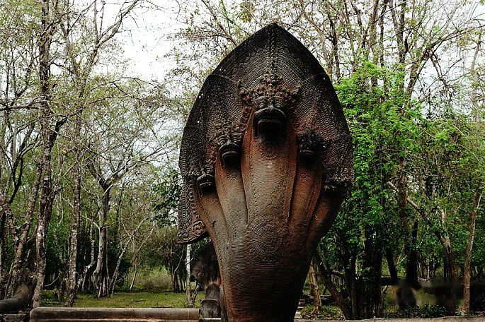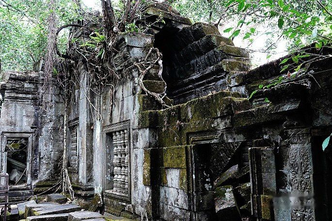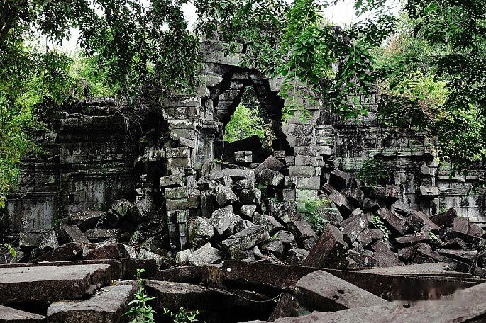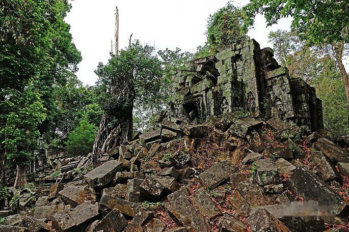 崩密列——Beng Mealea,是一座小吴哥窟式的寺庙,名字的意思是“荷花池”。这座寺庙距离吴哥古迹群以东40公里,崩密列是一座印度教寺庙,但是它有一些雕塑都反映的是佛教的主题。崩密烈是一个彻底荒废了的寺庙,与它相比,同样荒废的塔布茏寺只能算是忘了给草坪割草的庭院。建造它的就是给世界留下吴哥窟的苏耶跋摩二世。其布局和它名气更大的孪生兄弟吴哥窟极其相似,但是今天的崩密烈已经变成了乱石堆,很难想象它和吴哥窟有何相似之处。有的地方先后因为排地雷和拍电影清理过丛林,但是这儿仍然有一种特殊的氛围。崩密烈在暹粒东北约70公里处,有一条土路通往那里,旱季这条路尚可行走,雨季里它就会泥泞难行。崩密列不属于常规的吴哥景区范围内,所以一般的旅游团行程中很少会包括这个景点,因为确实有些太荒僻