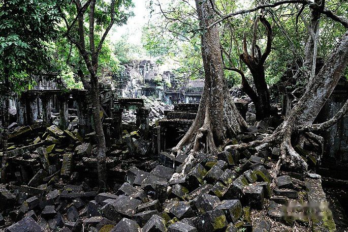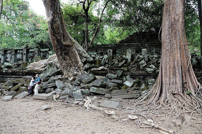到处是巨大的树木,估计这就是导致寺庙坍塌的原因