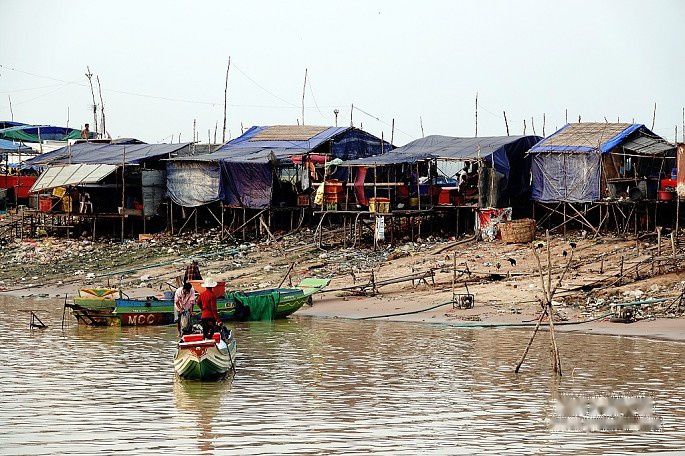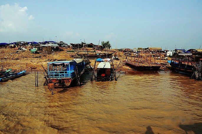洞里萨湖——当地语作Bceng Tonle Sab。意为“巨大的淡水湖”或纯粹“大湖”, 有一种说法是说TonleSap是来自希腊文“海”的意思,元朝的周达观到达这里时,将洞里萨湖叫做“淡洋”。法国人称它为大湖。又名金边湖,位于柬埔寨境内北部,呈长形位于柬埔寨的心脏地带,是东南亚最大的淡水湖泊。湖滨平原平坦、广阔,长500千米、宽110多千米,西北到东南,横穿柬埔寨,在金边市通过洞里萨河同与贯穿柬埔寨的湄公河交汇,是湄公河的天然蓄水池。它像一块巨大碧绿的翡翠,镶嵌在柬埔寨大地之上,为高棉民族的发展与繁荣提供了坚实的资源保障,是柬埔寨人民的“生命之湖”。每年枯水季节,湖水经洞里萨河流入湄公河,补充了湄公河水量的不足,这时湖面长150千米,宽30千米,面积2700~3000平方千米,平均水深仅1米左右。——网摘