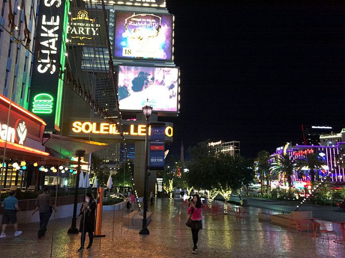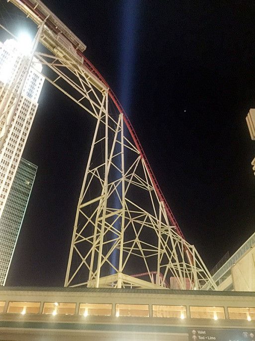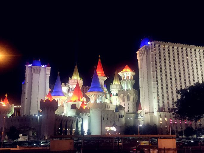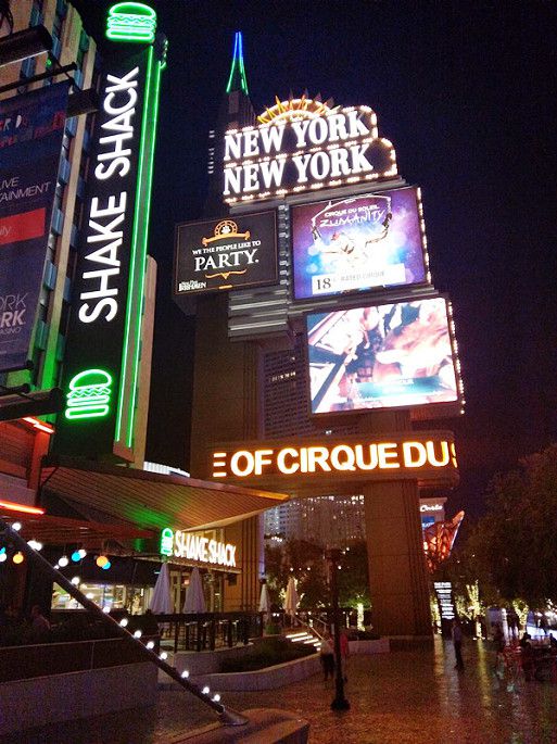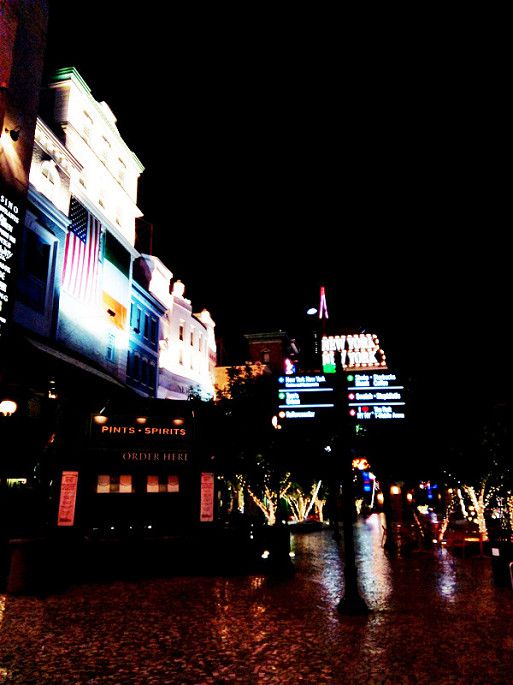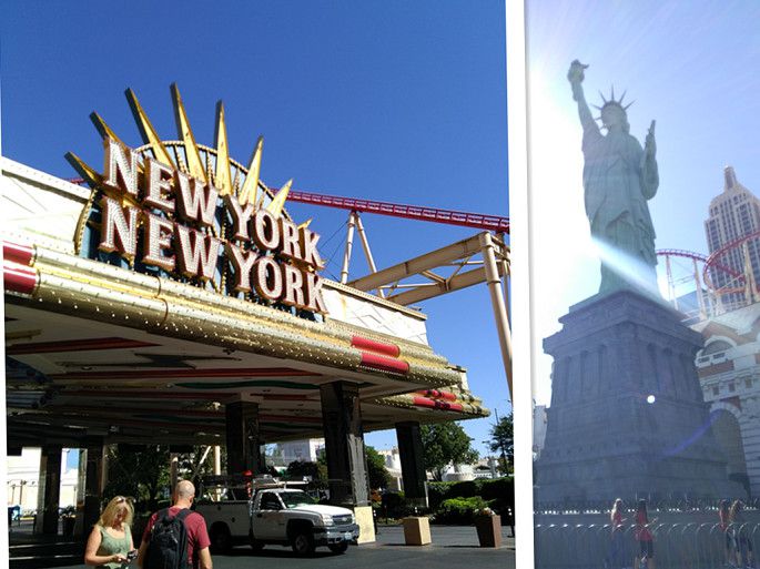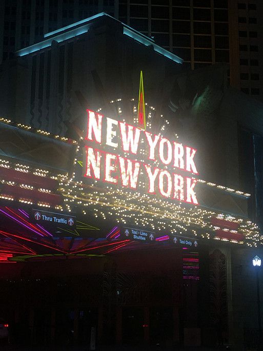 有时旅行就像人生一样会遇到不可操控的剧本,我们继续沿着93号公路往Las Vegas去,由于之前没有认真做功略,不知道拉斯维加斯还分为北LV和南LV,偏偏,我们要去的地方街名在南北LV都有,所以当导航带着我们在北LV的同名街道四处都找不到酒店,而周边阑珊的灯火让我们更是对那片冷清的地方产生怀疑时,才发现犯了这样一个错误。本该在晚上八点左右就能到达的new york new york 酒店,此时还在另一片灯火之中,我们只得重新确定方向,找到正确的路线,再度出发,说好的在LV看一场“秀”的计划也只能泡汤,幸好没有提前订门票。
