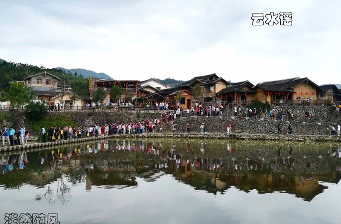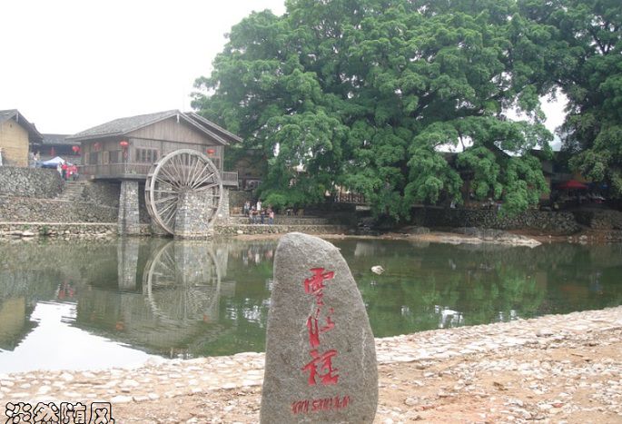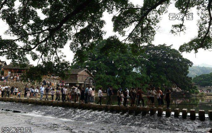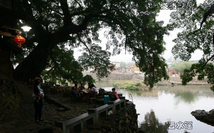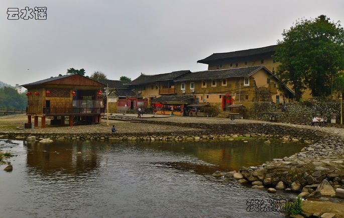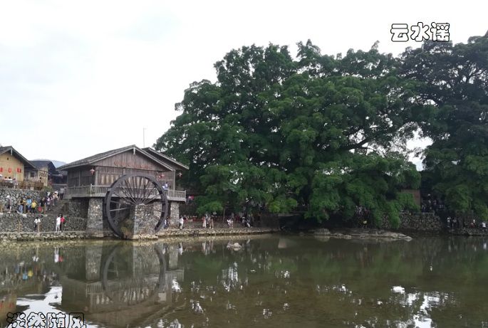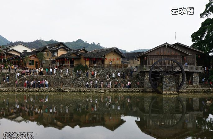 云水谣,一个很诗意的名字。其实这个古镇原名为长教村,早年少为人知。2005年底,由张克辉以自己的生活经历为原型创作的电影剧本《寻找》改编而来的电影《云水谣》当中的部分场景拍摄便是在这里取的景,而随着电影上映,这座隐于深山的古镇一时声名鹊起。2008年福建土楼“申遗”成功后,当地政府更是将村中的这条长达10余公里用鹅卵石铺就一条古道,并正式命名为“云水谣古栈道”。这里的大水车之前是没有的,是当时为了拍《云水谣》需要而搭建的,电影拍完了,这个大水车则留了下来,而它也成为了云水谣景区一个非常具有标志性的景点。来这里的游客都会在这里拍照留影。